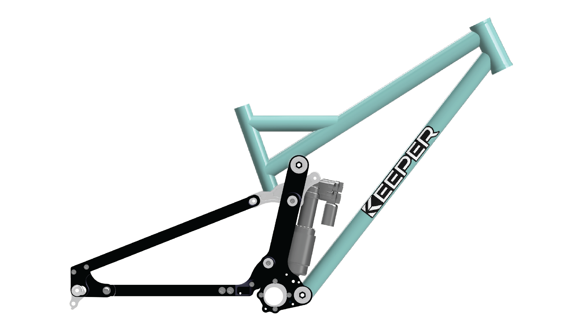 This is game changing. The Keeper front triangle is different than others in that it doesn't have an integrated bottom bracket or shock mounts. What it does have are two mounting points that connect to the Alpha Section (where all that good stuff lives), which means that in about as long as it takes to drink a beer, you can swap out your front triangle and go from trail bike to enduro crusher or downhill beast.
